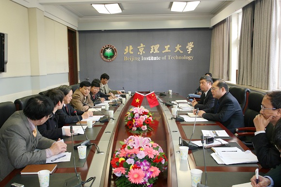 双方在主楼二层会议室举行了会谈。国际交流合作处王庆林处长向代表团详细介绍了我校在教学、科研和国际交流等方面取得的成就。留学生中心张卓立老师介绍了我校留学生教育的情况。Vu Thanh Hai副校长对我校在人才培养和产学研结合等方面取得的成绩表示赞赏,希望以后能向我校派出高水平研究生或青年教师来留学。黎贵敦大学是越南一所著名的国防院校,现有6名来自黎贵敦大学的留学生在我校学习汉语。明年,这些学生将正式成为我校一年级留学生。