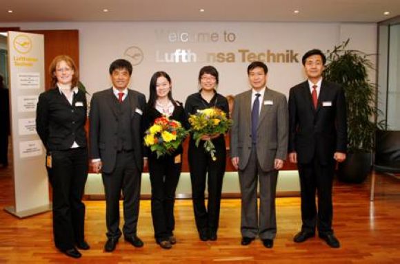 本次会议还授予了我校管理与经济学院学生李颖和黄觅同学2008年度“汉莎航空技术公司优秀学生奖”。该奖是汉莎航空技术公司与我校合作建立国际经济与贸易专业实习基地时设立的。杨蜀康书记向我校获奖学生表示祝贺,勉励他们努力学习,为学校争光,为促进学校与汉莎航空技术公司的合作做出贡献,并与获奖学生合影留念。