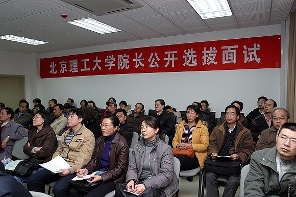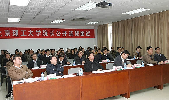根据《中共北京理工大学委员会关于2008年中层领导班子换届工作实施方案(试行)》,以及党委常委会意见精神,全校17个学院院长的招聘都采取了面向校内外公开选拔的方式。本次公开选拔院长活动,引起了校内外有识之士的广泛关注,共有78人报名参加院长公开选拔,他们大多是相关学科领域专家学者,其中不乏长江学者、特聘教授,国家杰出青年基金获得者、以及国家科技进步一等奖获得者等。经过资格审查和常委会初审,32名报名者进入面试环节,他们将分别参加自动化学院等8个学院院长职位的面试。面试包括应试人员个人陈述、面试专家提问、特邀评议专家及教职工代表民主评议测评等环节。