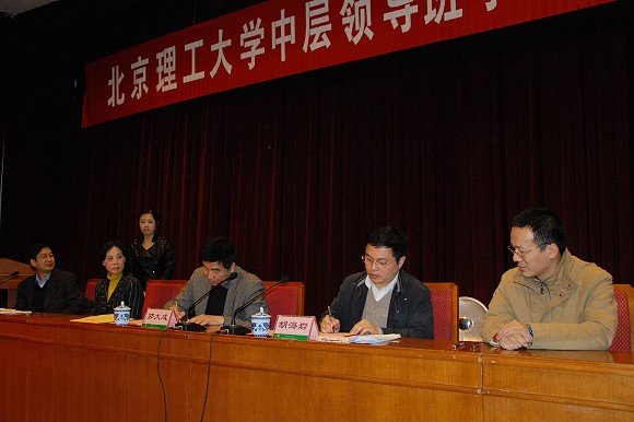 2008年12月26日下午,我校中层领导班子换届工作总结大会在中心教学楼一层报告厅举行。郭大成书记作重要讲话,大会由校长胡海岩主持。纪委书记杨蜀康同志对新任处级领导班子和领导干部进行了集体廉政谈话。党委书记郭大成、校长胡海岩分别与新任中层领导班子主要领导干部代表签订了党风廉政责任书。
