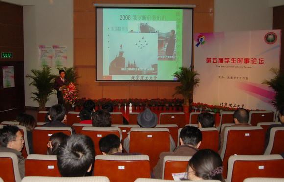 2008年12月13日(周六),北京理工大学第五届学生时事论坛决赛在良乡校区综合教学楼演艺厅成功举办。
