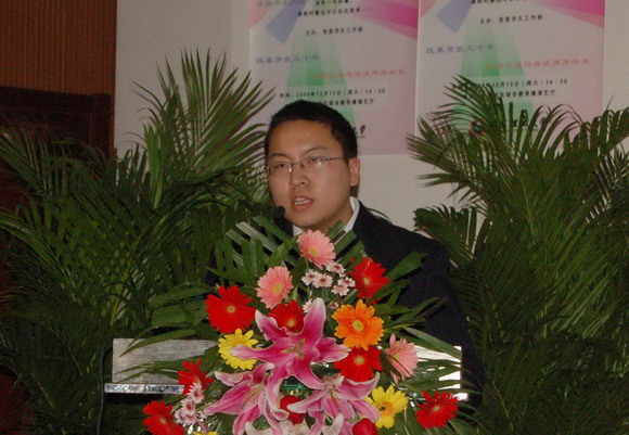 来自人文社会科学学院的陈楚峰同学,别出心裁的将“改革开放”四个字拆开,分别列举了三十年间人们社会生活发生显著改变的生动事例,以小见大,展示了改革开放三十年来的巨大成就。
