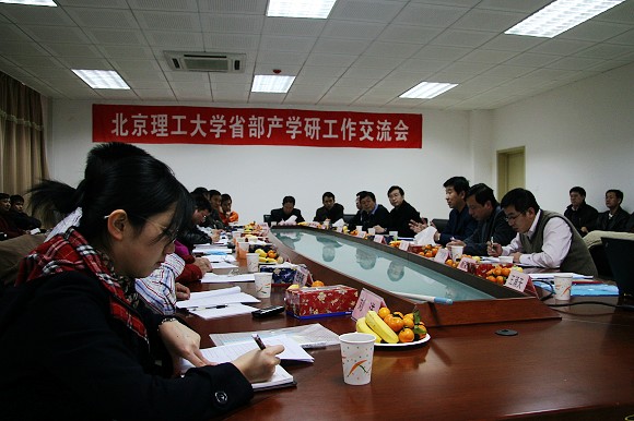 党委书记郭大成首先致辞,对雷厅长一行的到来表示热烈欢迎,对省部产学研办对我校的大力支持表示感谢,并介绍了学校的情况和学科优势,强调了产学研工作对学校的重要作用。郭书记指出,北京理工大学是一所以理工为主,理工文管多学科协调发展的全国重点大学,是中国共产党建立的第一所理工科大学。多年来,学校始终秉承延安精神与延安自然科学院以来的办学传统,坚持“立足国防、面向全国、服务地方”的服务面向定位。经过不断的奋斗和积累,学校在现代通信、光电工程、自动控制、车辆技术、光机电一体化、化工和材料、计算机及软件等军民两用技术方面形成了明显的特色和优势。学校一直非常重视产学研合作,与各大军工集团及全国很多省市都开展了富有成效的合作。近年来,我校十分重视与广东省的合作,涉及项目研究、平台建设、人才培养等多个方面,其中,与中山、珠海、东莞等地市的合作已取得了实质性进展。最后,郭书记表示学校今后将一如既往的大力支持省部产学研工作。