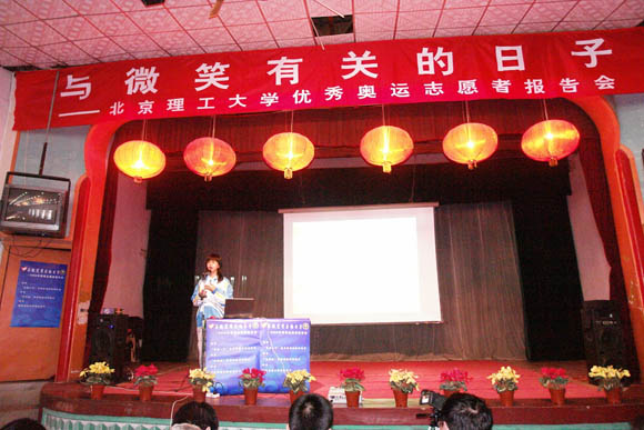 应我校研究生支教团服务地山西省朔州团市委的邀请,北京理工大学“与微笑有关的日子”优秀奥运志愿者报告团分别于12月18日、19日在朔州职业技术学院和大同大学朔州师范学校两所学校举办了专场报告会,报告团成员的精彩演讲赢得了当地1000余名师生的广泛好评。