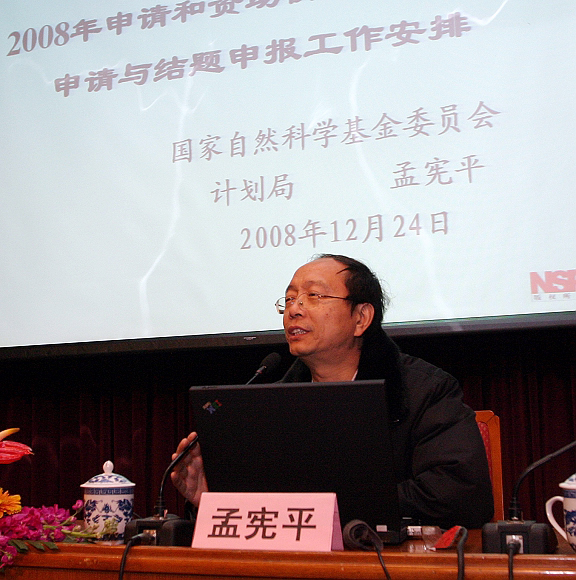国家自然科学基金委计划局孟宪平局长介绍国家自然科学基金2008年的资助情况及2009年基金申请工作中的一些注意事项。