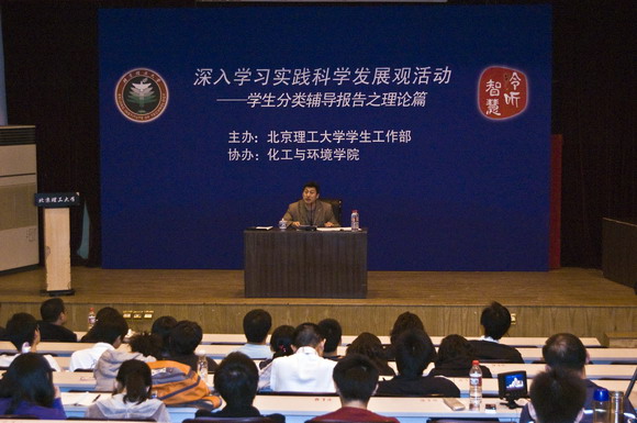 根据我校深入学习实践科学发展观活动实施方案的总体安排,为更好地结合我校实际开展学习实践活动,我校于4月8日晚7时在七号楼报告厅举办了第34期“聆听智慧”名家论坛活动,此次活动由学生工作部主办、化工与环境学院协办,邀请了中央组织部党建研究所办公室主任赵湘江教授作为嘉宾,作了题为《认真开展学习实践活动,不断开拓科学发展新局面》的报告。报告会由学生工作部副部长杨海主持,学生工作部副部长许欣、化工与环境学院副书记、副院长孟祥以及部分05、06级本科生党员出席了本次报告会。