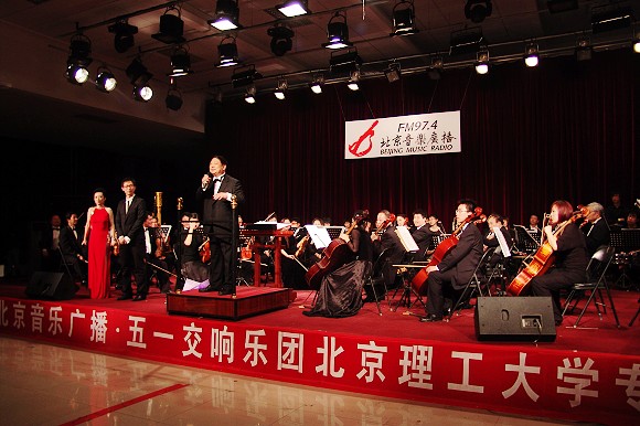 2009年4月19日晚七点,“红旗颂”交响音乐会在新食堂四层多功能厅拉开帷幕,吸引了众多师生到场观看。为了更好的普及高雅音乐,让首都学子接触更丰富的音乐,北京理工大学学生社团联合会特邀“北京音乐广播•五一交响乐团”到我校进行专场演出,旨在通过高水平交响乐团进校园的演出活动向广大学子普及丰富优美的高雅音乐,传播高尚的审美情趣。