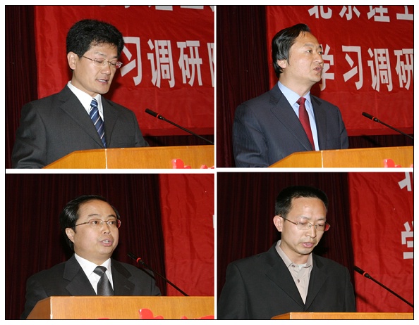 郭大成书记在讲话中介绍了我校学习实践活动的“四点做法”,即:1、建立了学习实践科学发展观活动的领导机构和工作机制;2、制订了学习实践活动实施方案和学习调研阶段的工作安排;3、建立了督促检查制度;4、建立了专家引领制度。