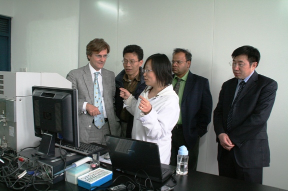 会谈结束后邓玉林院长陪同加拿大客人参观实验室