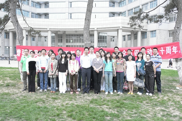 下午6:00校第六届研究生支教团在中心花园延安石刻旁边举办了“增强团员意识 加强基层组织建设”纪念五四运动九十周年宣誓活动。2009年十佳团员候选人代表、各学生组织代表参加了宣誓活动,校团委副书记衡靖在活动现场发表了热情洋溢的讲话,她号召“我校团学骨干要把团员队伍培养成最积极、最活跃、最有生气的一支力量,使之具有强烈的爱国热情、高度的社会责任感、崇高的奉献精神,用自己的努力向祖国和人民、向全世界展示当代中国共青团员崭新的精神风貌和优秀的整体形象。”