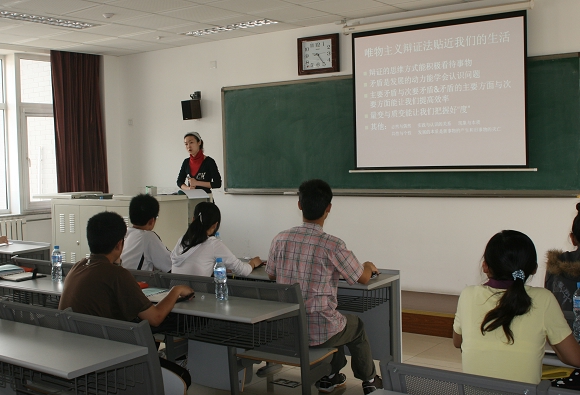 为了响应学校深入学习实践科学发展观的号召,做好召开专题民主生活会和专题组织生活会的各项准备工作,围绕“聚焦特色谋发展,激情进取创一流”的实践载体,我院学生工作办公室赵宁老师针对学生工作特点对学生党建工作进行了相关指导。赵宁老师首先强调了党建工作的重要性,指出信仰对于一个人尤其是一个党员的重要性,作为一名党员,要切实端正学生的入党动机。从开展民主生活会入手以信仰引导青年学生的人生观、世界观、价值观,努力提高自身的综合素质,为做一名合格的共产主义接班人而不断前进。而后,赵宁老师围绕科学发展观将学生干部在工作中对理论的学习提到了新的高度,运用生活中的具体事例,生动的引导学生干部学会如何将唯物主义辩证法融入到生活工作学习中,以积极的心态和科学的方法看待问题、解决问题。并对学生党支部支委成员提出要求,要求他们在培训积极分子和培养预备党员的实际工作中,也要有意识地引导他们用科学的理论武装自己,活学活用唯物主义辩证法。