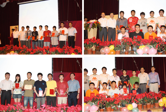 刚刚在第14届国际机器博弈锦标赛上获得国际六子棋项目金奖的软件学院本科2006级的学生崔皓、林思然做了精彩的《从程序设计大赛走向国际舞台》的报告,他们深情地回顾他们自校园程序设计大赛走向国内、国际舞台的酸甜苦辣、惊心动魄的历程,在场的领导、老师、同学们都为他们一路的艰辛和取得的优异成绩而感动,都为他们的优秀表现而喝采!