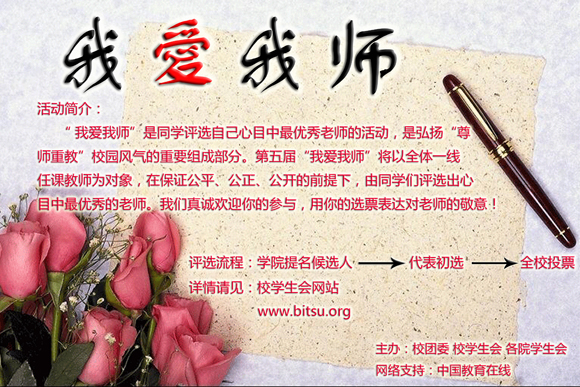 有“老师您辛苦了,祝生活幸福快乐”。这样朴实无华的话语,也有“老师,您的学生永远爱您,尊重您”这样感人至深的文字。活动的现场气氛非常活跃,不少同学纷纷表示自己是发自内心的热爱自己的老师。活动进行仅两天就把几百张贺卡上全部填满了对老师的祝福与爱意。 本次活动取的良好效果,一方面使更多同学了解到“我爱我师”评选活动并积极参与到评选中来。另一方面,通过一种简单而又朴实的形式唤起了同学们心中对老师的一种尊敬与喜爱。