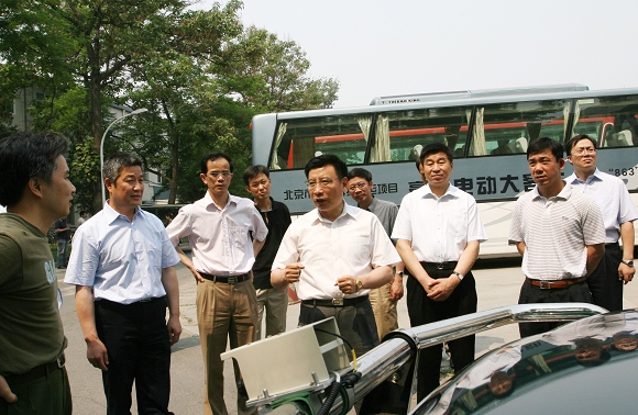 苗圩一行视察和参观了我校电动客车充电站(亚运村)、电动车辆国家工程实验室、车辆传动国家重点实验室和学校科技创新成果展,认真听取了相关负责人的汇报。