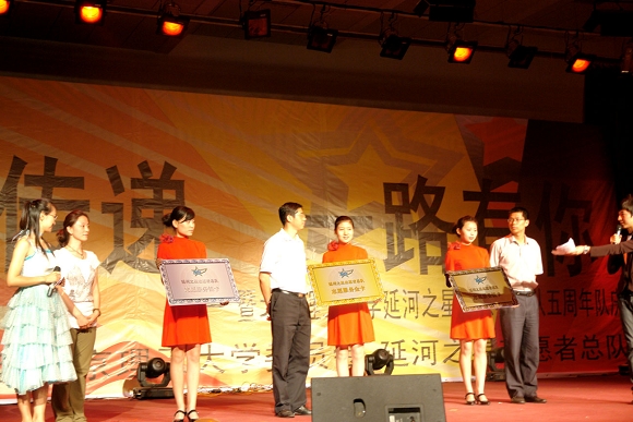 北京舞蹈学院的志愿者们为大家带来了激情的现代舞表演,引起了全场的沸腾,之后,北京志愿者协会副秘书长陈炳具、北京志愿者协会会员部底向阳、校团委书记徐强现场揭幕了总队自己设计的志愿服务金银铜卡,并用热情洋溢的讲话极大地鼓了延河之星志愿者们。他们的讲话中谈到志愿者的工作完全出于爱与奉献,虽然没有物质上的报酬,收获的却是友情,是感动;希望总队的志愿者们能在以后的志愿服务工作中再创佳绩。