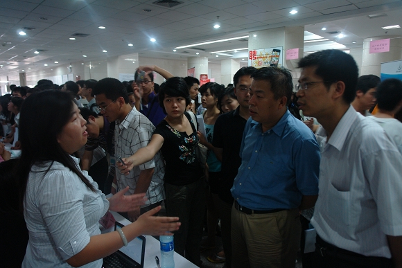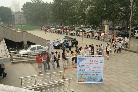 双选会开始不到十分钟的时间里,会场内已经人满为患,会场外的同学们已经排起了200米的长队。为了保证会场安全,校团委按照“分批进入、单向进出、有序引导”的方式开展组织工作,保证了每一名同学在会场内都能自由的选择自己理想的单位。