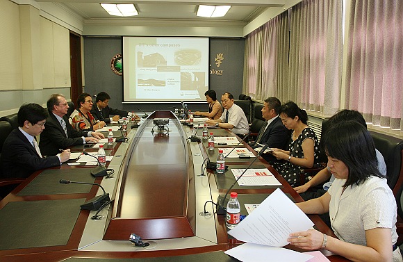 赵长禄副校长与代表团就国国家留学基金委公派博士生项目、两校教师交流、学生联合培养和科研合作,以及北京高校引智研究会与澳大利亚IRUA大学联盟合作进行了友好的会谈,希望把CSC奖学金项目作为合作的重点,争取启动本科生的交流与合作,尽快在某几个领域推动两校教师和学生的科研合作,尤其是新能源领域的合作。