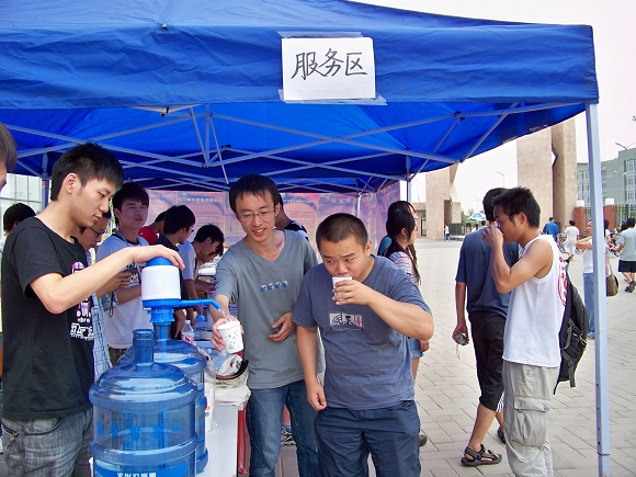 在书市现场,校团委专门搭设了服务台,悉心为同学们准备了纯净水、防晒霜、验钞机等物资,得到同学们一致好评。