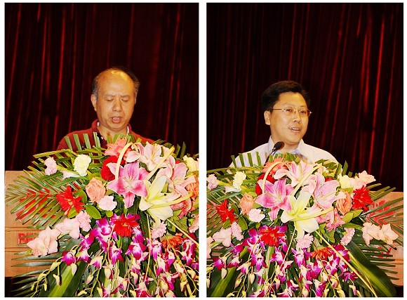 教师代表林家明(左)在发言中,嘱咐毕业生们牢记母校的培养、老师的教诲,希望毕业生早日成才,常回来看看,学院永远是同学们的家。校友代表刘雪峰(右)在发言中结合自己学习成长的经历,真切的表达了对母校和老师的感恩之情,希望2009届毕业生们步入社会后能够充分运用在学校学习的知识,脚踏实地,不断进取。