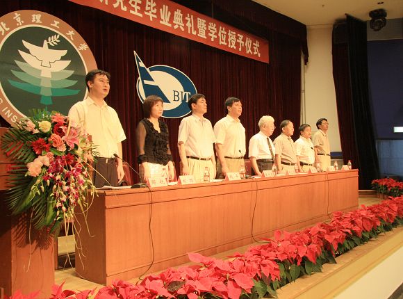 全体与会人员齐唱《北京理工大学校歌》,随后进行了学位授予仪式。