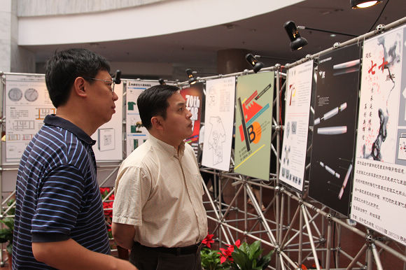 2009年6月24日,由设计与艺术学院发起并主办的德育答辩展板作品展暨校庆礼品设计优秀作品展在我校中关村校区中心教学楼一层大厅隆重开幕。校党委书记郭大成、校长胡海岩、党委副书记副校长杨宾、副校长赵长禄、副校长李和章等校领导在设计与艺术学院党委书记杨海滨、副院长杨建明、党委副书记副院长丛磊老师的陪同下参观了展览,校领导一边听我院师生讲解,一边浏览各优秀作品展板,并就有关学术问题、设计创新点与我院师生进行了交流。