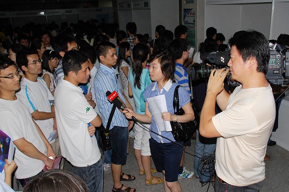 2009年6月27日上午9:00,校团委、招生就业工作处、航天科技集团人力资源部人才开发处联合在体育馆北大厅举办了“青春试航”航天科技集团专场非毕业生见习双选会。来自航天一院、航天五院、航天七院、航天八院、航天九院的22家单位来到北京理工大学招募见习生,现场提供见习岗位200余个。北京理工大学副校长李和章、航天科技集团人力资源部人才开发处处长于宁、北京理工大学招生就业工作处处长郝志强、北京理工大学校团委书记徐强等领导来到双选会现场,看望了用人单位和应聘学生。人民日报、新华社、光明日报、中国教育报、中国青年报、中央电视台、中国教育电视台等21家媒体来到现场进行了采访报道。