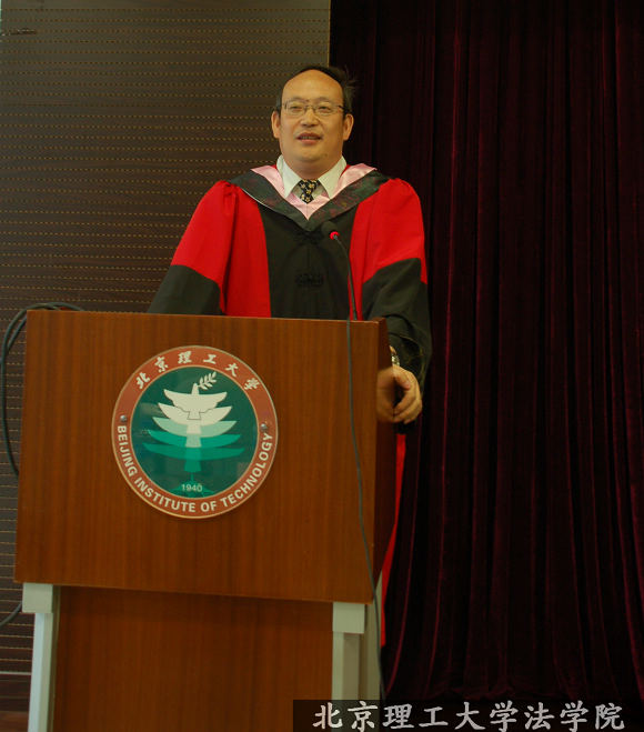 法学院首任院长,国内著名法学家谢晖教授向典礼致辞。谢晖教授从法学理念、法律信仰、法律哲学、法律职业的角度为大家诠释了法学院“法天法地,弘道弘仁”的院训,并祝福法学院第一届毕业生能够在今后勇创佳绩,捷报频传。谢晖教授还为广大毕业生献上一首七律诗。