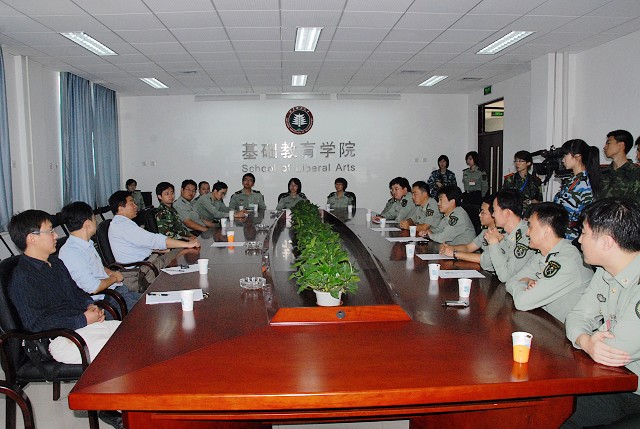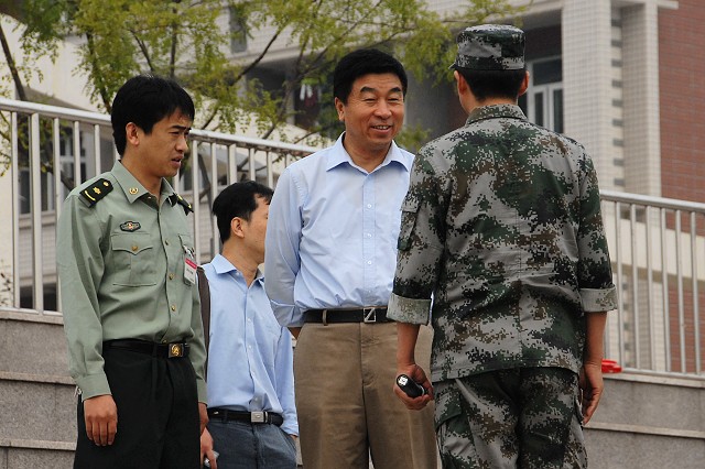 9月24日上午,校党委郭大成书记在学校办公室副主任金军、基础教育学院副书记、副院长高伟涛等陪同下到良乡校区检查我校2009年军训工作开展情况,并看望了军训带队干部和参训学员。