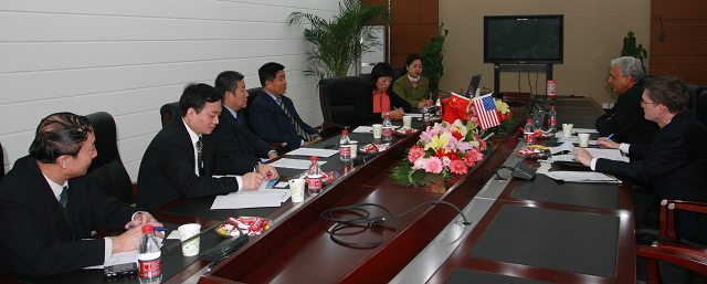 赵长禄副校长详细介绍了我校目前开展的一些国际合作项目。如:赴国外大学参加毕业设计、暑期英语培训、学生交换项目等。汪滢副处长就我校的历史发展、师生情况及最新科技成果等做了PPT介绍。王恩林处长、魏一鸣院长、李寿平副院长及马永霞教授分别介绍了我校留学生中心、管理与经济学院、法学院和教育科学研究所在学科建设及国际合作方面所取得的成绩。双方就今后合作的重点达成了共识,确定了第一阶段合作的学科方向。UVA明年初将派出教授代表团访问我校,落实各项合作。