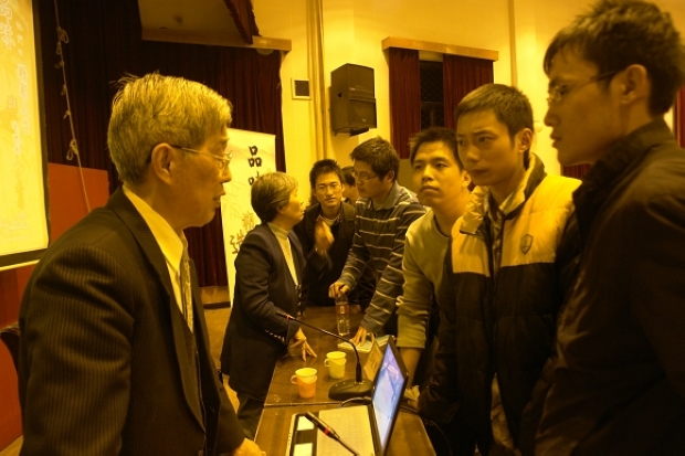 讲座在同学们热烈的掌声中结束,周大使和邓教授相续和同学们合影签名,同学们依依不舍地向他们请教问题,并祝两位老人重阳节快乐。