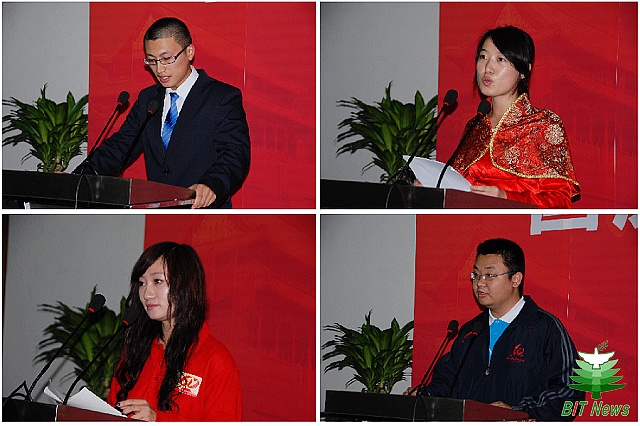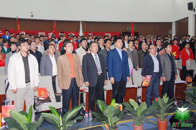 郭大成书记在大会上宣读了《中共北京理工大学委员会关于表彰首都国庆60周年庆祝活动参演人员的决定》。郭书记指出,我校参加国庆群众游行、广场合唱、群众联欢集体舞、国庆志愿者服务的全体师生员工,以高度的政治责任感、高昂的爱国热情和旺盛的工作干劲,团结协作、奋力拼搏,克服重重困难,向党和全国人民交上了一份满意的答卷,充分展示了朝气蓬勃、积极向上、斗志昂扬的精神面貌,用实际行动向祖国母亲六十华诞献上了一份厚礼。郭书记充分肯定了各部门积极配合、沟通快捷、工作高效,举全校之力办大事的优势和做法,并希望所有参加活动的师生能够把对祖国的爱转化为在学习和工作中的动力,力争把学校早日建成“国内一流 国际知名”高水平研究型大学。
