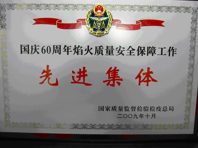为保证国庆60周年燃放烟花的质量,检验站精心调度、合理安排,克服了时间紧、任务重、产品品种调整变化快、工作条件艰苦等困难,先后奔赴湖南、江西、河北等地,牺牲节假日休息时间,加班加点,共检验烟花产品583种,近20余万发,圆满完成了国庆60周年联欢晚会指挥部、国家质监总局和北京市质监局下达的烟花产品标准制定、宣贯及监督检验等各项任务,为国庆60周年庆典做出了突出贡献。