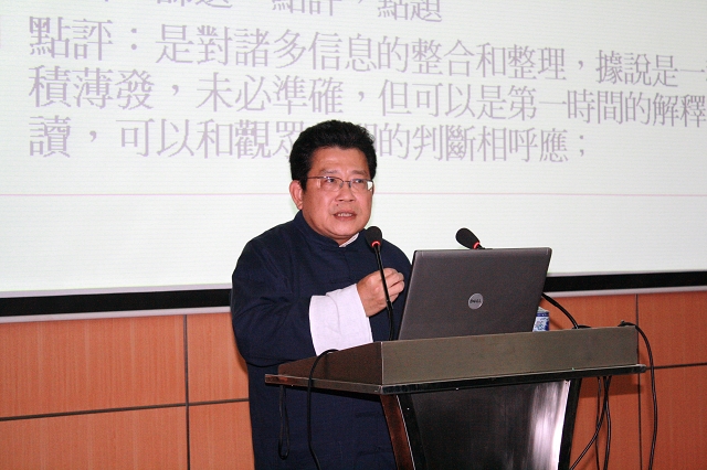 杨锦麟先生语言风格不掩饰,不矫情,时而高谈阔论,时而幽默风趣,时而词锋犀利,时而温和婉转。在两个多小时的报告里,杨先生首先回顾了他在凤凰卫视打破新闻业内常规,开播《有报天天读》节目的过程,讲述了他播报新闻、点评时政的原则和底线,分享了“如履薄冰读报,堂堂正正做人”的心得和体会。在下半部分的时间里,杨先生重点介绍了《走读大中华》节目的创意和目的,以一个知识分子和新闻人的良知诠释了对人民的爱、对祖国和民族的尊重。