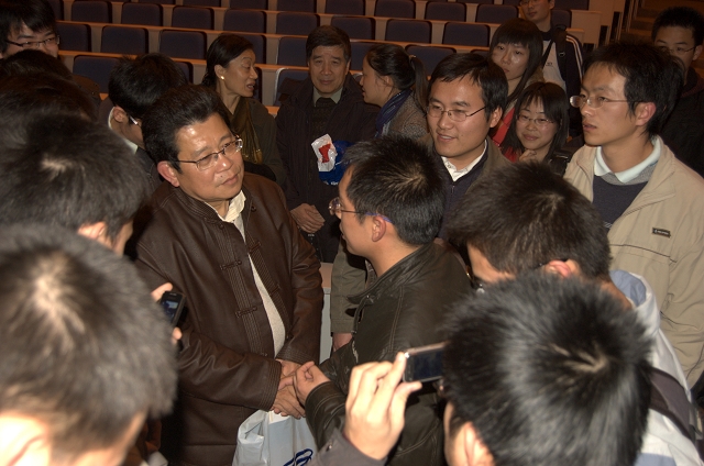 交流互动环节,杨锦麟耐心认真地回答了同学们的提问,杨先生谦逊的态度、诚恳的语气、巧妙的解答赢得了在场同学的阵阵掌声。
