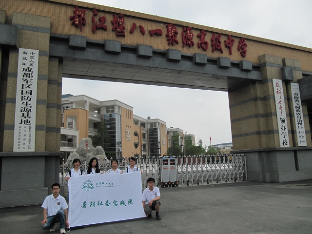 7月22日,北京理工大学赴汶川暑期社会实践团正式发团,同学们经过了30个小时的舟车劳顿于凌晨一点到达“天府之国”成都。7月25日清早,实践团按照制定的活动计划,正式开始了实践活动。五天里团队七人进行了五大系列调研,分别是:映秀之行——深入灾区,心系村民,践行以人为本;汶川之行——探访灾民,关注民生,贯彻可持续发展道路;聚源中学之行——重回校园,铭记党恩,关怀祖国未来;福利院之行——走进农村,慰问孤老,共建和谐社会;青城山之行——切身景区,体味民情,感怀拳拳民族情谊。