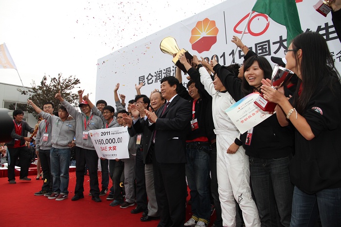 2011年10月21日下午,2011中国大学生方程式汽车大赛在上海国际赛车场落下帷幕。北京理工大学长安汽车车队在33支队伍中脱颖而出蝉联该赛事总冠军,并获得了最佳营销报告、造型设计第二名、技术报告第二名、直线加速第三名、八字环绕第三名、高速避障第三名、耐久赛第二名、完赛奖等八项单项奖。德国慕尼黑工业大学在获得多个单项最佳奖的同时以微弱的分差位居总成绩亚军,厦门理工大学位居季军。我校学生制作的宝马车队纯电动方程式赛车也作为唯一的电动赛车首次亮相赛场,并参与演示了高速避障等项目,得到广大企业、高校和媒体的赞扬。