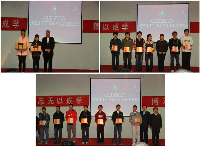 2011年10月28日下午,北京理工大学在良乡校区一号食堂三层隆重召开了第七届基础课优秀奖表彰大会。校党委副书记、副校长李和章、校长助理姚利民、教务处副处长杨刚、学生工作处副处长徐健、校团委副书记高博、肖坤、基础教育学院党委书记王悦音、中国移动房山分公司副总经理汪剩峰,学院全体工作人员及500余名学生代表参加大会。大会由基础教育学院常务副院长张青山主持。 表彰会旨在切实加强学风建设,树立积极上进的学习氛围,倡导团结互助的集体精神,鼓励在基础课中学习优秀的集体和个人。此次信息与电子学部电子科学与技术(双语班)05921001班等15个班级和机械与运载学部的葛丹桐等210名学生分别获得本次表彰的集体奖和个人奖。基础教育学院党委书记王悦音宣读了《北京理工大学基础课学习优秀表彰决定》,随后与会领导为受表彰班集体和个人代表颁发了荣誉证书和奖品。