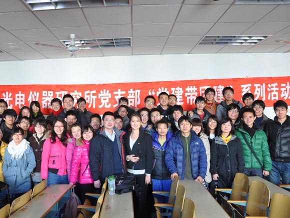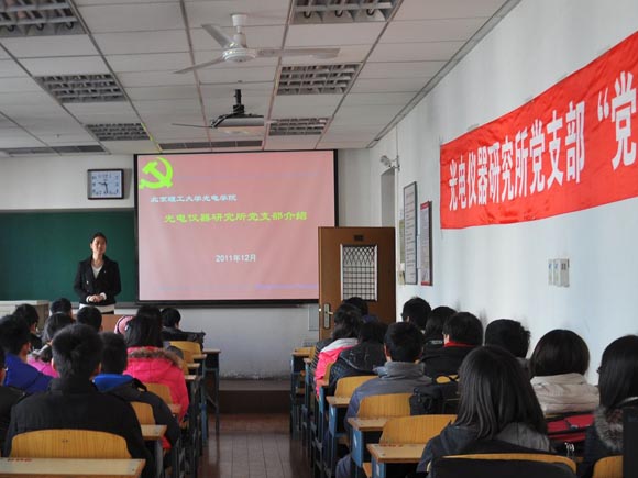 2011年12月10日,光电学院光电仪器研究所党支部与良乡校区2010级测控1、2班团支部在中关村校区联合开展了“党建带团建”活动。光电学院分党委书记韩宝玲教授、学院分团委姜曼老师、光电仪器研究所党支部书记宋勇副教授、副书记何川老师、董立泉副教授等教师以及良乡校区2010级测控1、2班团支部40余人参加了本次活动。