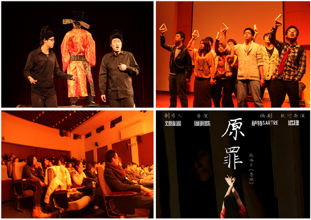 在校园的话剧舞台,三部全新剧目隆重上演。12月8日、9日,校话剧团带来改编自台湾脚本的《东厂仅一位》,以一种借古喻今的方式,在看似荒诞、滑稽的情节中反应了对现代社会、问题的反思,演出现场座无虚席,两场演出共吸引了近千名观众。12月18日,致力于“将实验话剧进行到底”的太阳剧社,在良乡校区排演了著名先锋戏剧《恋爱的犀牛》,为良乡校区的师生重新演绎了这部堪称经典的作品。此外,12月12日,校话剧团为大家带来了改编自萨特名著《苍蝇》的全新剧目——《原罪》。