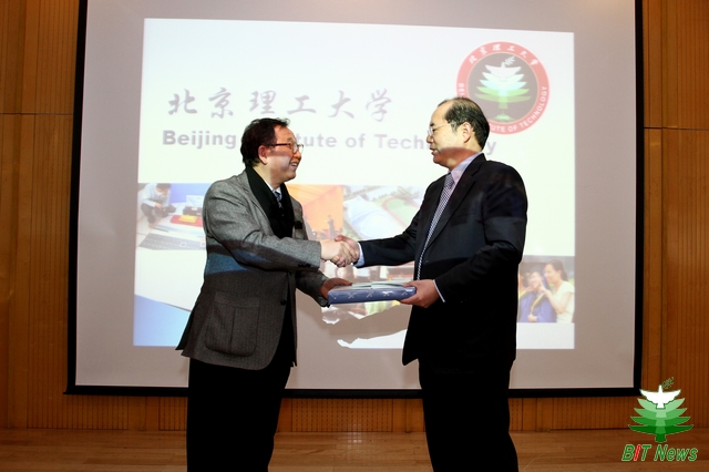 王庆林代表学校致欢迎辞,就两校友好合作历史进行了简要回顾,希望两校继续保持良好的合作态势,并在将来两校之间开展更多的教师、学生交流项目和联合培养项目。AHN HEEYOUNG就王庆林的热情接待表示衷心感谢,并向在座的韩国师生着重介绍了北理工与建国大学的友好合作关系,希望各位师生能在这次访问中有所收获,表示两校之间将会在人员交流、教学科研以及信息交流等方面进行更加深入的合作。