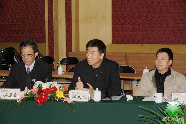 郭大成在致辞中首先代表学校对北汽集团各位领导的到来表示热烈欢迎,向来宾介绍了学校的办学历史、办学成就以及办学理念,表示学校将继续坚持“立足国防,面向全国,服务地方”的定位,积极服务北京市发展建设,特别是继续深化与以北汽集团为代表的业内领先企业之间的合作共建关系,希望双方战略合作框架协议的签署能够开启双方合作的美好前景,搭建更加广阔的合作平台,能够在科研技术攻关、科技成果转化、人才培养、学术交流以及教学实践等方面开展全方位、深层次的交流合作。
