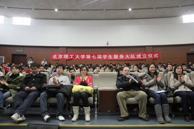 2011年12月22日下午,北京理工大学第七届学生服务大队成立仪式在我校良乡校区综合教学楼报告厅举行。学生工作处副处长许欣,基础教育学院副书记、副院长丛磊,学生工作处资助办公室、基础教育学院办公室的相关老师以及各学部辅导员出席本次会议。