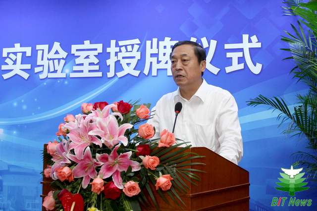 北京理工大学党委书记郭大成发表致辞,热烈欢迎各位领导莅临我校为“新能源汽车北京实验室”授牌。北京市教委副主任付志峰宣读了实验室认定通知。“新能源汽车北京实验室”是由北京理工大学牵头,联合北京工业大学、北京交通大学、北京信息科技大学、北京市电力公司、北京汽车集团有限公司等单位组织申报的第一个北京实验室。