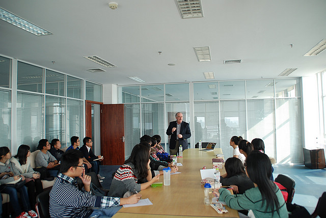 2012年10月29日,人文学院经济系国际班国外高校教授系列讲座邀请来自加拿大滑铁卢大学经济学院的常平教授为我院刚刚组建的2012级经济系国际班同学们做学术讲座,参加此次讲座的还有经济系李常青老师以及国际班班主任冯卓老师。