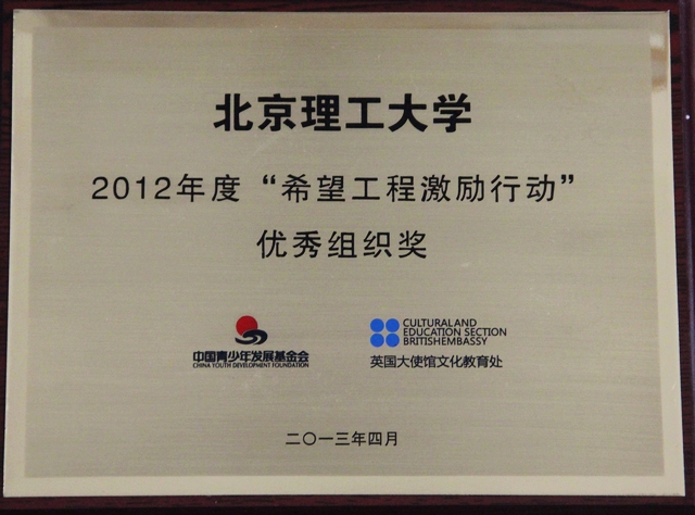 北理工学生处获2012年度“希望工程激励行动”优秀组织奖