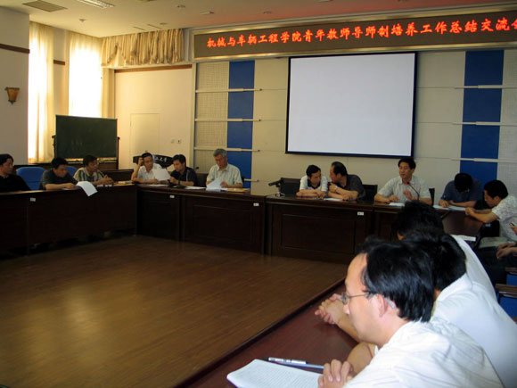 2007年6月6日,机械与车辆工程学院青年教师导师制培养工作总结交流会暨新教师入校仪式在车辆重点实验楼召开。院长项昌乐、党委常务副书记张英、副书记、副院长郝洪涛、副院长丁洪生、胡纪滨、左建华参加会议。人事处副处长赵文祥应邀出席会议。2005年、2006年、2007年入校的新教师以及导师参加会议。党委常务副书记张英主持会议。