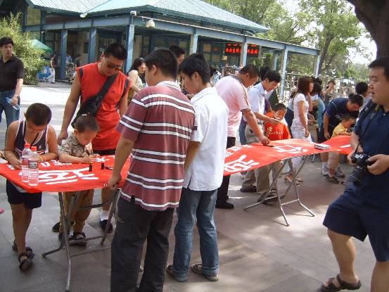 为了响应我院“党员零距离”系列活动的有关号召,以实际行动迎接2008年奥运会的到来,2007年5月27日我宇航科学技术学院04级本科四支部在玉渊潭公园门口及紫竹院公园开展了以“宣传奥运知识、弘扬奥运精神、传播奥运文化”为口号,以“我以我行迎奥运”为主题的大型签名活动。