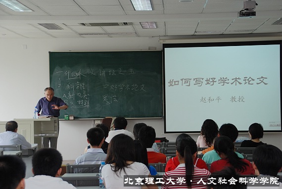 6月1日下午2:00,以“人文视野中的和谐社会”为主题的人文讲坛系列讲座第五场在研究生楼506举行,《北京理工大学学报(哲学社会科学版)》主编、人文学院马克思主义理论教研部主任赵和平教授为大家带来了以《如何写好学术论文》为题的精彩讲座。