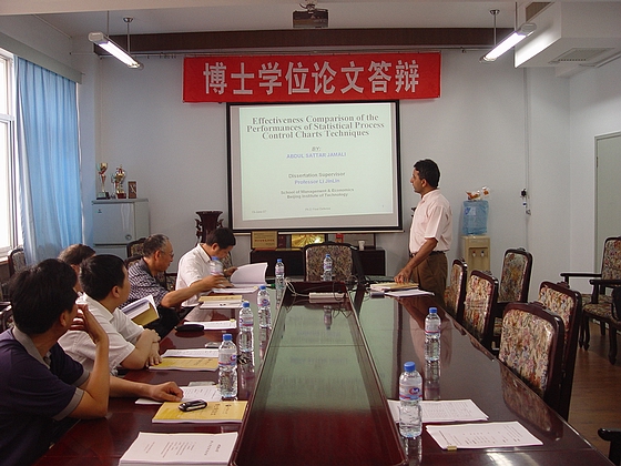 近日,我校巴基斯坦籍留学生Abdul Sattar Jamali顺利通过了管理学博士学位论文答辩。Jamali是我校管理与经济学院第1位通过博士学位论文答辩的留学生。他于2003年获得巴基斯坦政府奖学金、通过中巴联合培养研究生项目来我校学习,是我校第一批巴基斯坦籍博士留学生,导师为李金林教授与崔利荣教授。