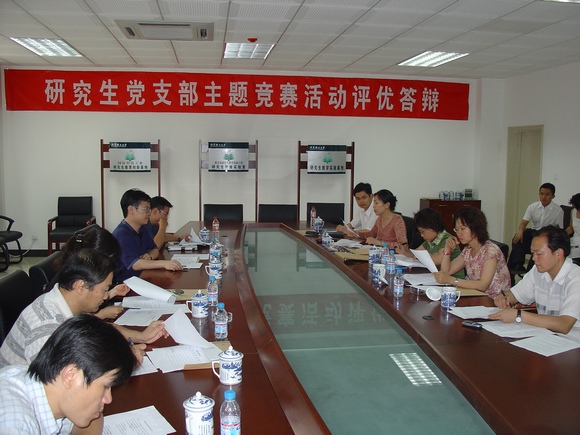 为庆祝建党86周年,加强我校研究生党建工作,促进和谐校园建设,推动新时期研究生党建创新,推动研究生党支部战斗堡垒作用和研究生党员先锋模范作用的发挥,研究生工作部在本学期开展了“主题党日、主题组织生活会、主题社会实践”竞赛活动。通过全校各研究生党支部申报支部主题活动方案,研究生工作部组织评审,评选出17个左右的示范性研究生党支部主题活动重点立项,支持研究生党支部开展主题鲜明、形式多样、各具特色的研究生党支部活动。这一举措有效地活跃了研究生党支部的组织生活,受到了各基层党组织的欢迎。
